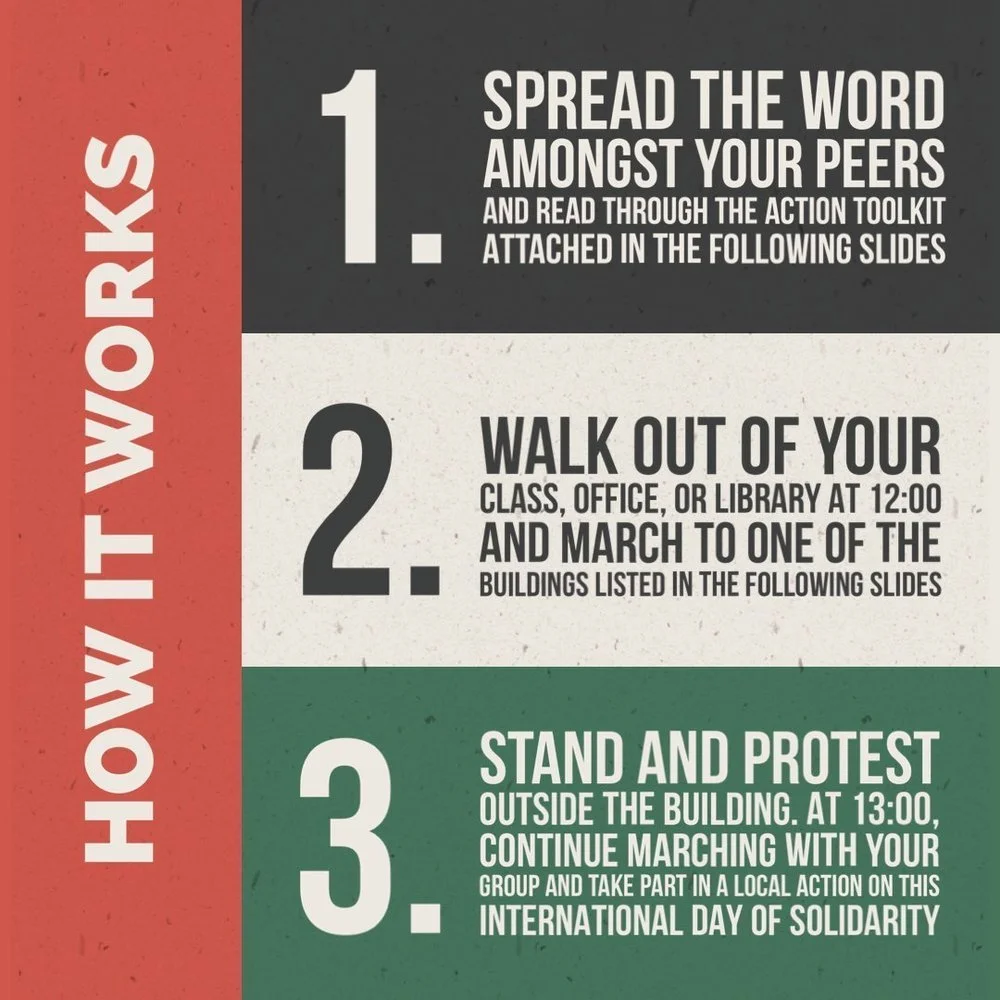 1️⃣ No more academic censorship! We demand the right to openly teach about the history of Israeli occupation and apartheid without intimidation.